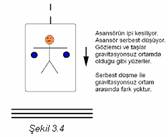 düşerler. Gözlemci yukarı çekilmekle, gravitasyon alanında olmak arasındaki