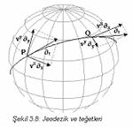 yörüngesi bir jeodeziktir. Bunun hız vektörü ise jeodezi boyunca paralel kayan
